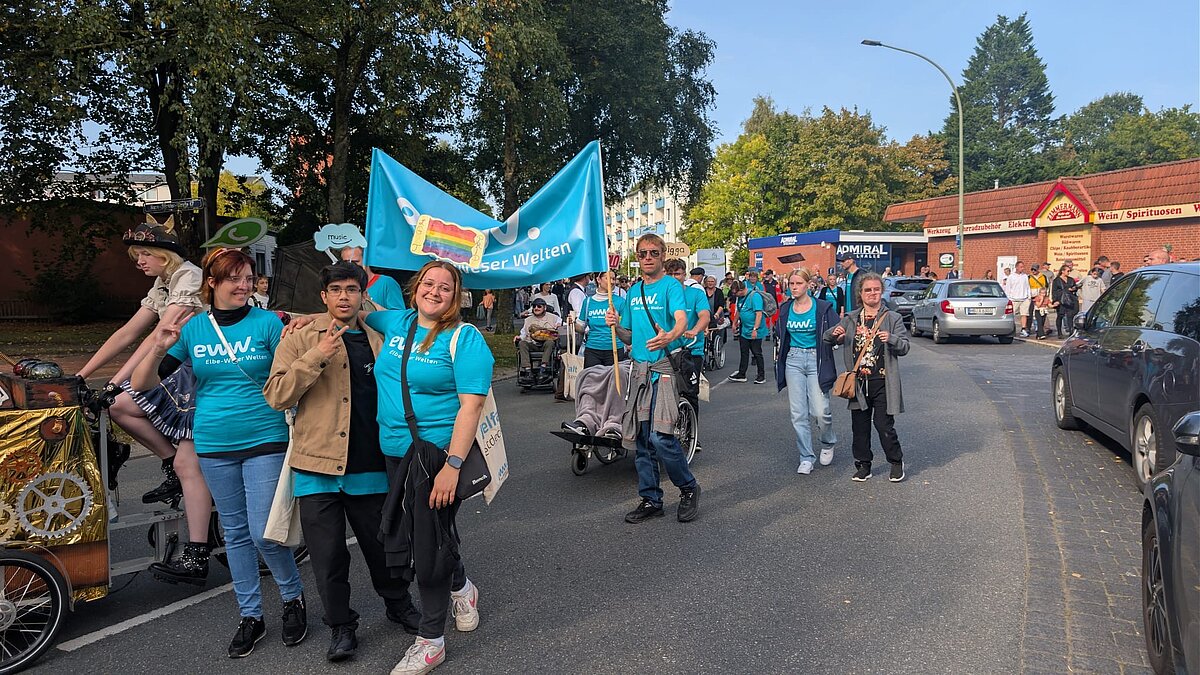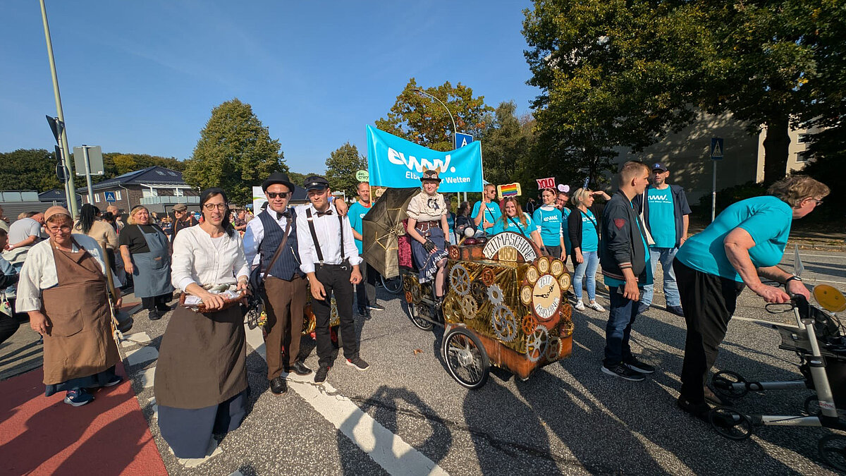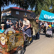 Am Sonntag, 28.09.2025, fand bei bester Spätsommer-Sonne der diesjährige Heidjerfest-Umzug durch Leherheide statt. Mit dabei war wieder eine Gruppe aus dem Wohnbereich der EWW.