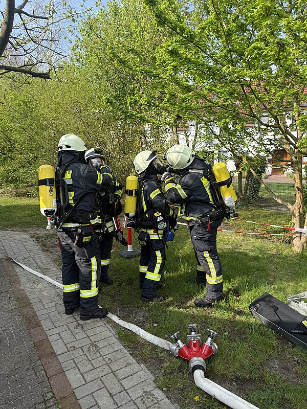 Kurz darauf trafen die Einsatzkräfte der Freiwilligen Feuerwehr Langen ein. Mit voller Ausrüstung begaben sie sich ins Gebäude, suchten nach einer vermissten Person und begannen mit den Lösch- und Belüftungsmaßnahmen. Für die Feuerwehr selbst war diese Übung eine gute Gelegenheit, das Objekt besser kennenzulernen und die Zusammenarbeit mit dem Kindergarten zu vertiefen.