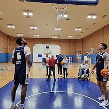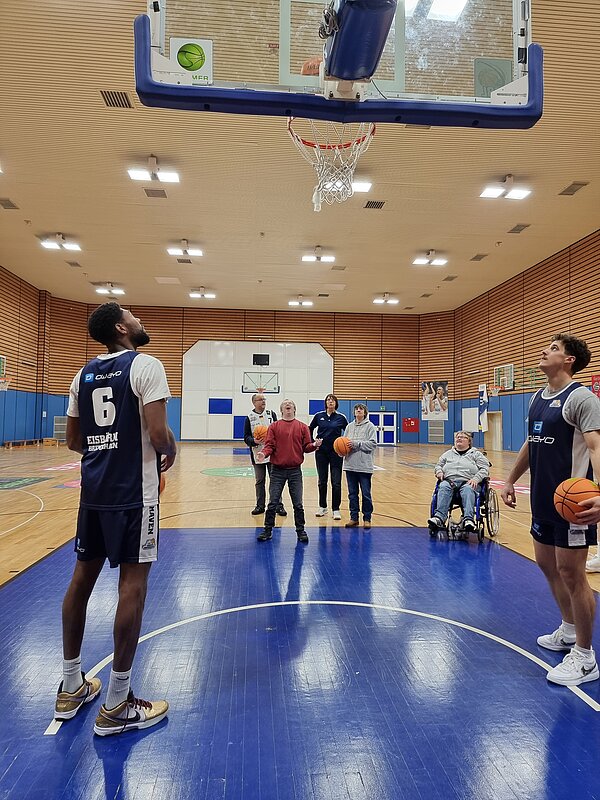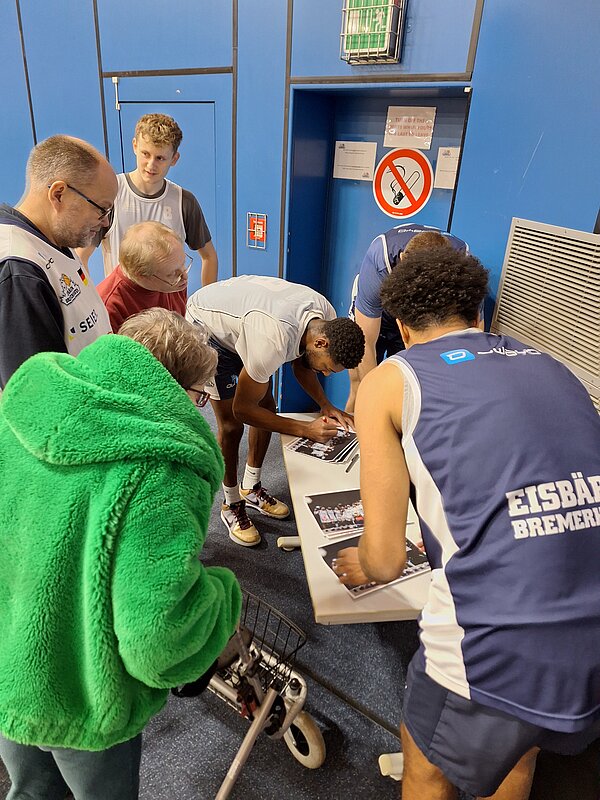 Knapp eine Woche vor dem mit Spannung erwarteten Inklusionsspieltag haben die Eisbären Bremerhaven am Donnerstag, den 5. Dezember 2024, zu einem besonderen Training eingeladen. Sieben Beschäftigte von Elbe-Weser Welten hatten die Gelegenheit, gemeinsam mit den Profis Körbe zu werfen und in die Atmosphäre eines echten Basketballtrainings einzutauchen. Während des offiziellen Trainings nahmen sie am Spielfeldrand Platz und feuerten begeistert jeden gelungenen Wurf an. Im Anschluss fand eine Autogrammstunde statt, bei der Erinnerungen festgehalten und Hände geschüttelt wurden.