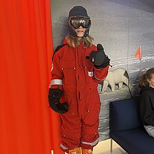 Alle Teilnehmenden besuchten die Holzabteilung, wo sie auch selbst aktiv mitarbeiten konnten. Anschließend ging es weiter zur Gas- und Ölbrennermontage. Von dort führte der Weg ins AWI-Bekleidungslager. Hier hatten zwei freiwillige Schülerinnen die Gelegenheit, sich wie echte Forscherinnen einzukleiden – allerdings wurde es in der Ausrüstung schnell sehr warm, sodass die Kleidung bald wieder abgelegt wurde.