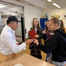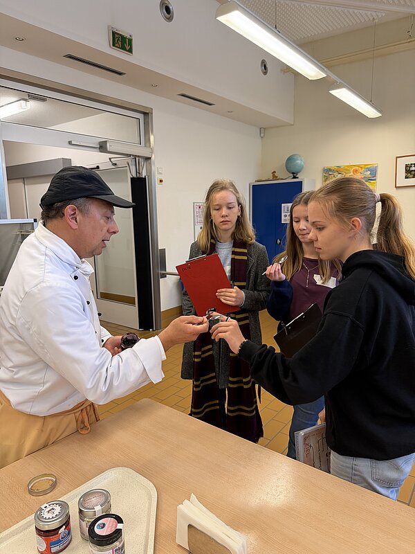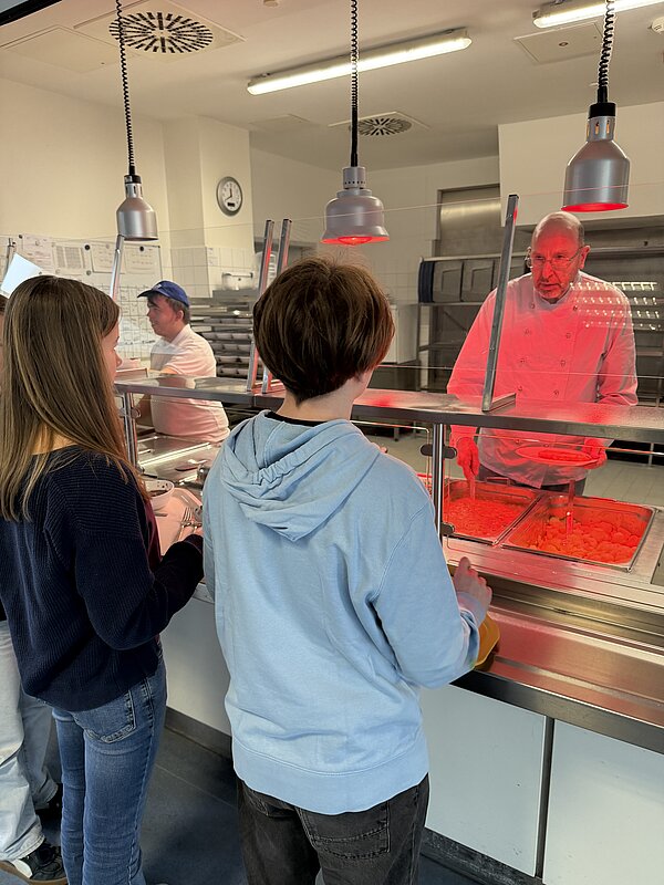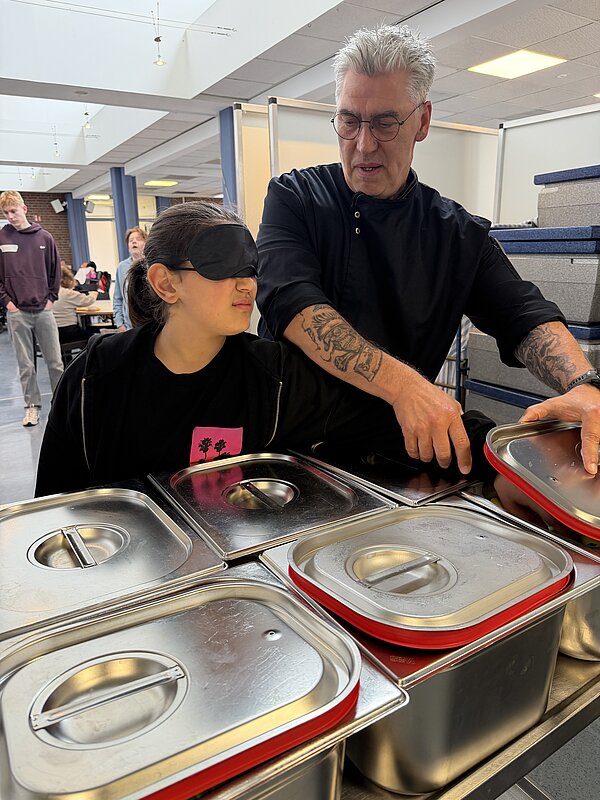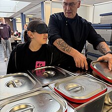 Im Anschluss wurde es in unserer Küche kreativ: Verschiedene Lebensmittel mussten ertastet und erraten werden. Beim gemeinsamen Mittagessen in unserer Kantine blieb Zeit für Austausch und Gespräche.